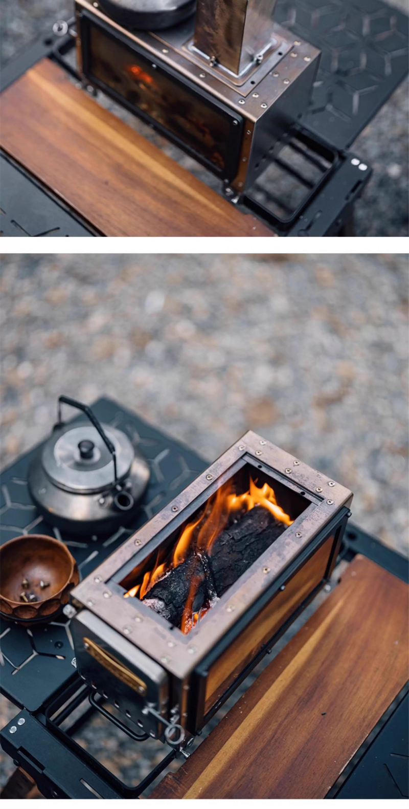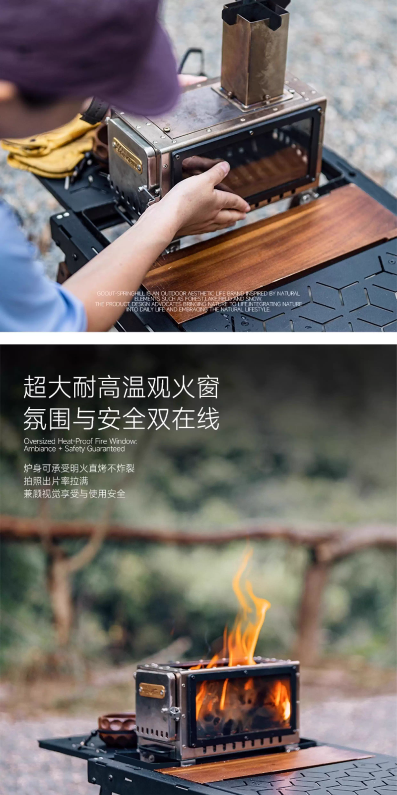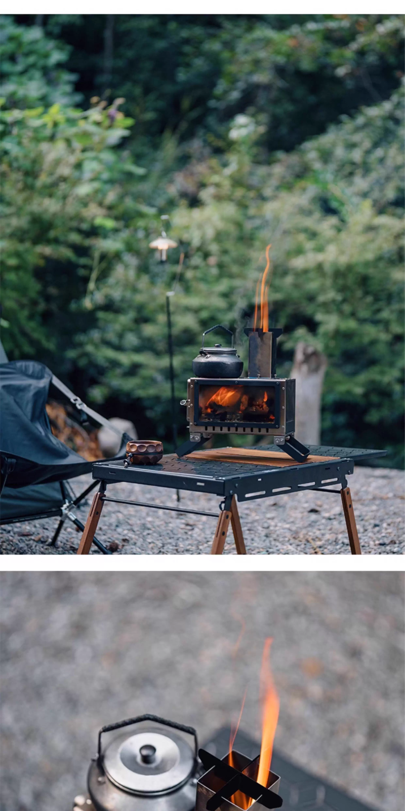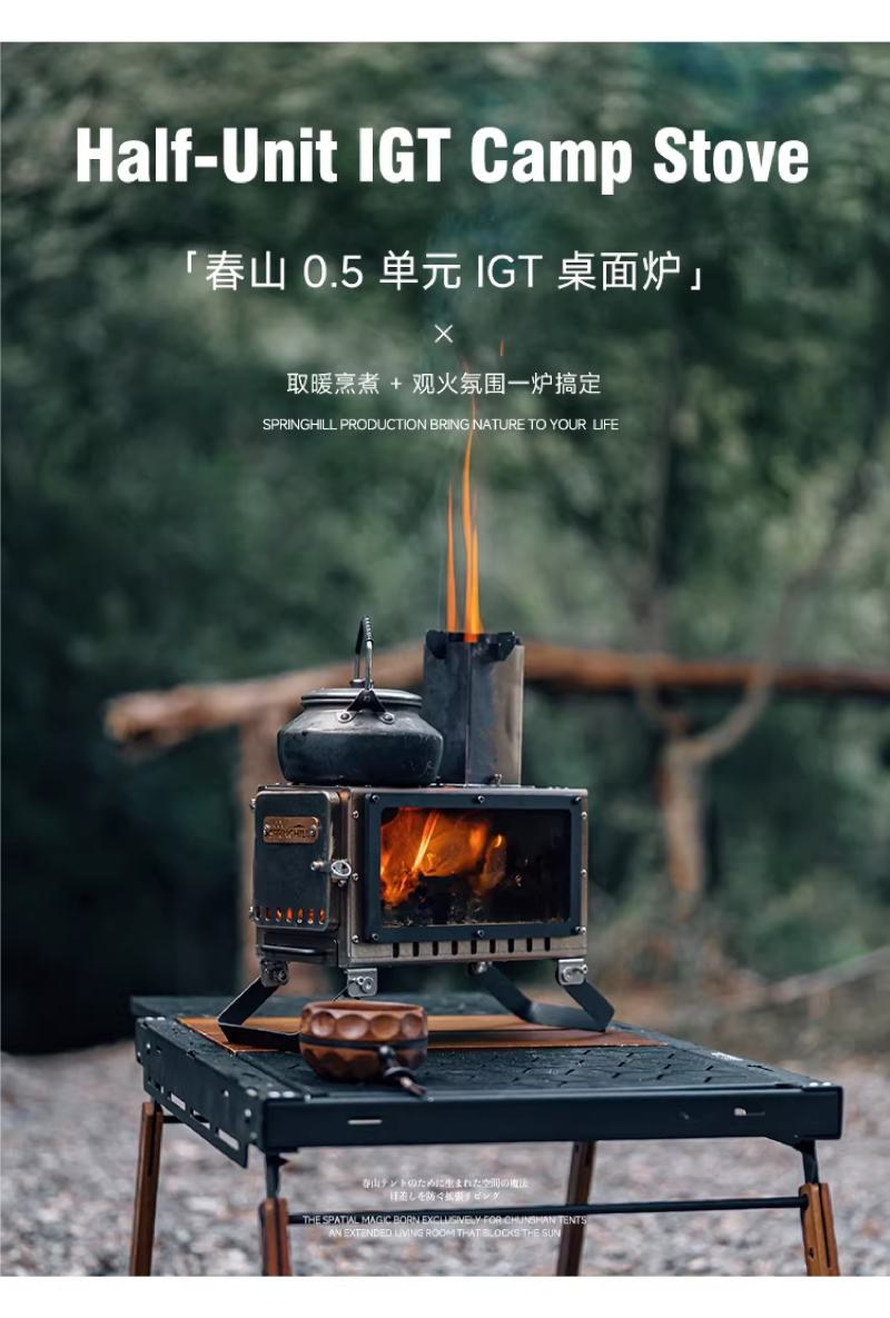 戶外露營柴火爐小型便攜折疊觀火燒水暖爐