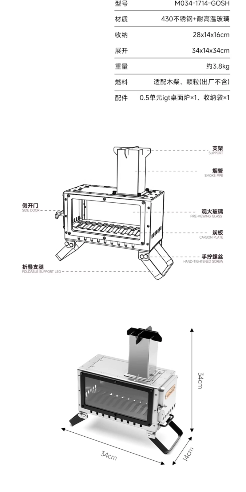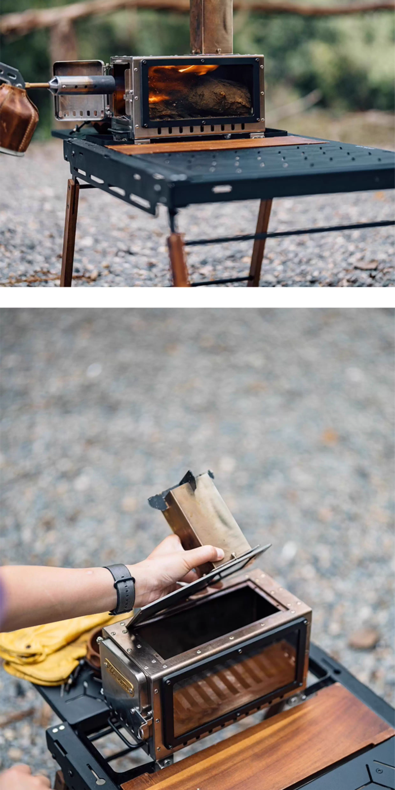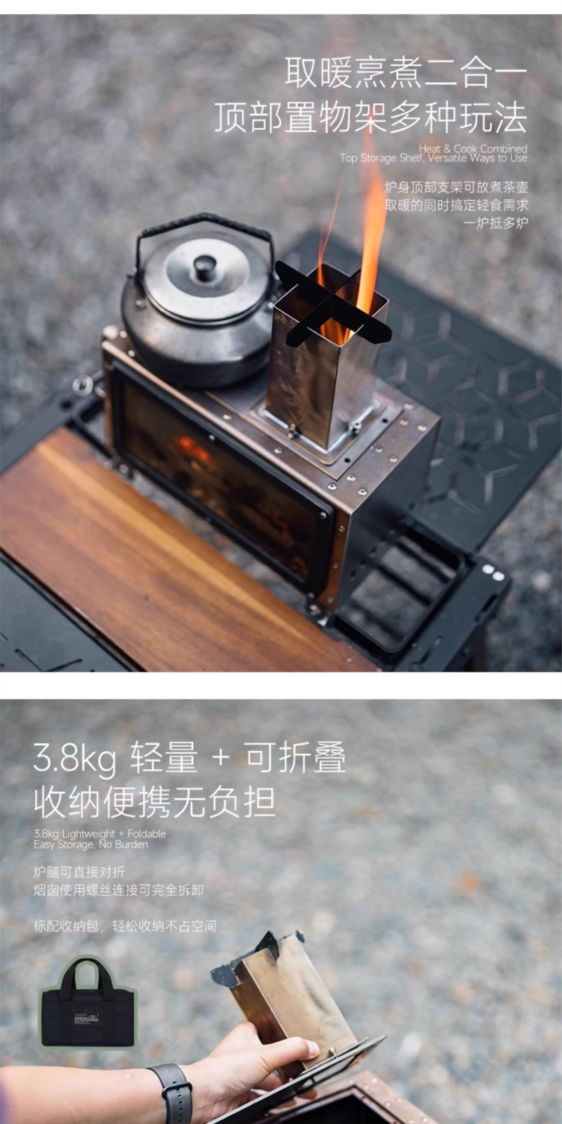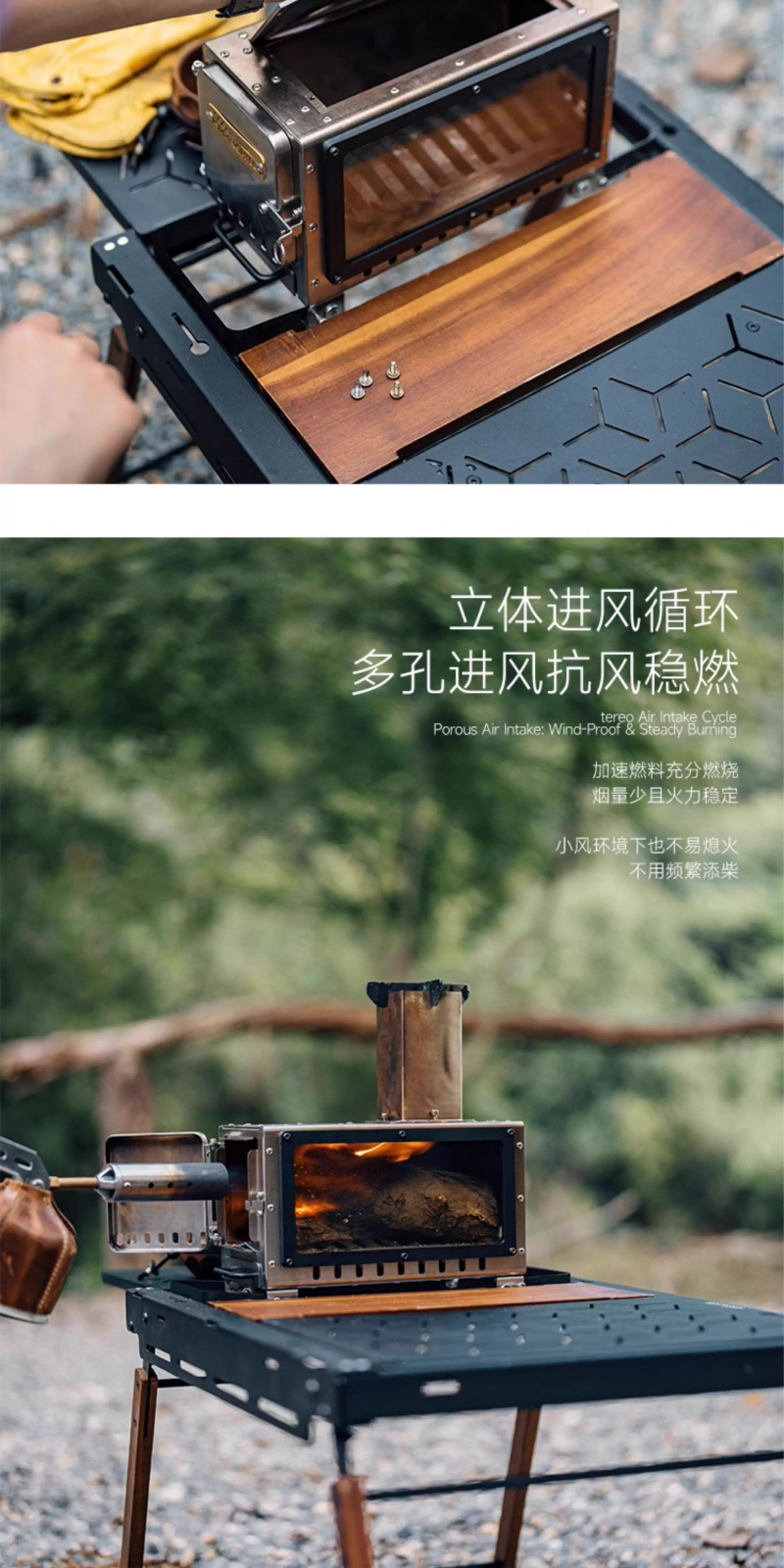戶外露營柴火爐小型便攜折疊觀火燒水暖爐