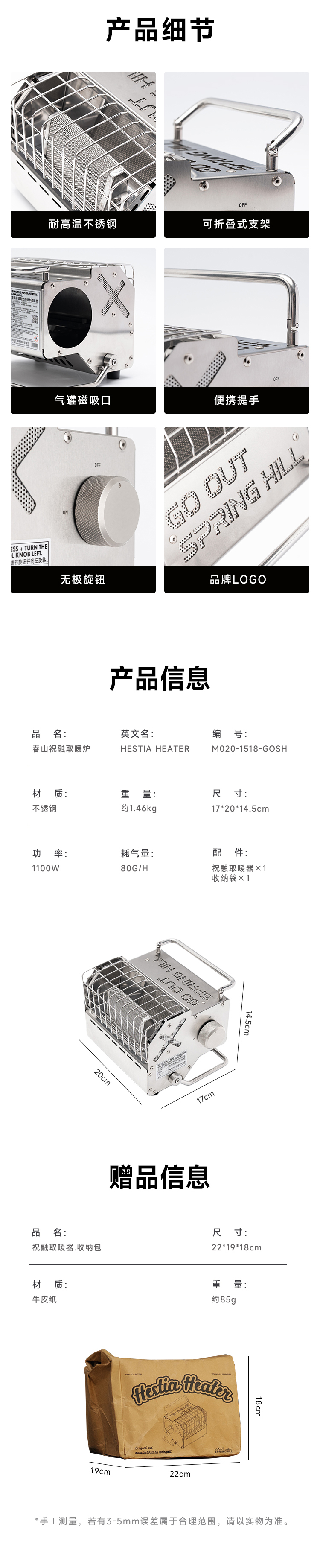 SPRINGHILL春山祝融取暖器送專用保溫拓展板