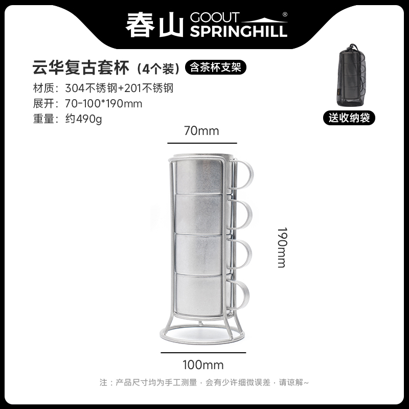 304+201食用級不鏽鋼 每組四個杯子 還附杯架及收納袋