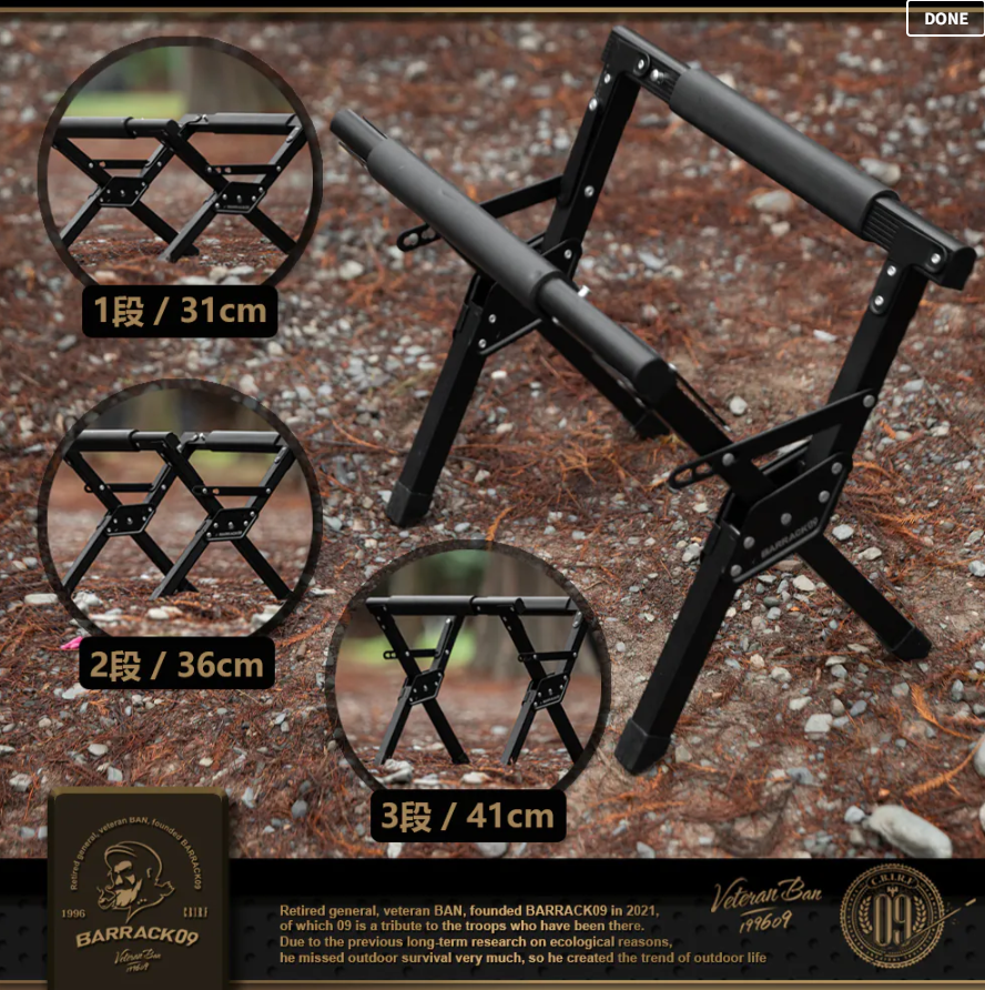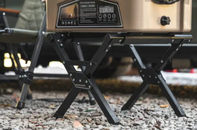 對於許多戶外露營愛好者而言,面對戶外各種地面、泥濘、草地等擺放美觀的箱子、冰箱或鋁箱等物品時,總是充滿了不捨。在這樣的需求下,BARRACK09 精心打造了全新的X型冰箱支架,特殊全黑化設計,不僅突破了市面上支撐架呆板設計的印象,更讓您的露營風格能夠在每一個細節中閃耀。