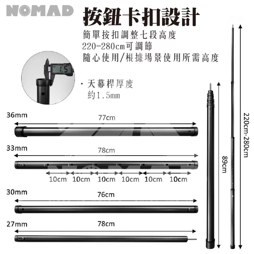 品名|NOMAD方形280伸縮營柱/天幕桿